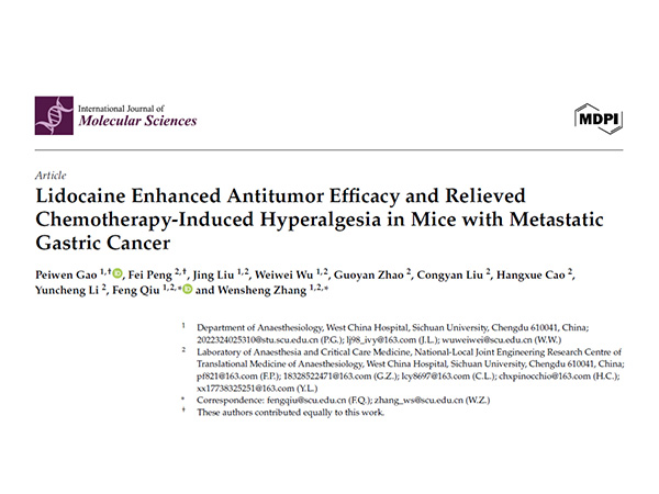 利多卡因是一种局部麻醉药,通过阻断神经细胞上的钠离子通道,以可逆且非成瘾的方式阻断疼痛信号传导。它传统上用于缓解肿瘤切除术后的切口疼痛,且近年来被发现具有广谱抗肿瘤潜力。当作为化疗补充药物时,利多卡因可显著增强抗肿瘤效果。在治疗腹膜转移癌的关键手段——腹腔内化疗中,常引发腹膜炎症和腹痛,这不仅限制了